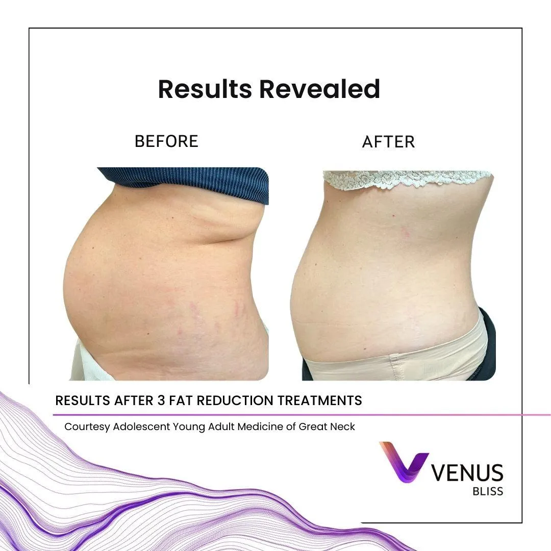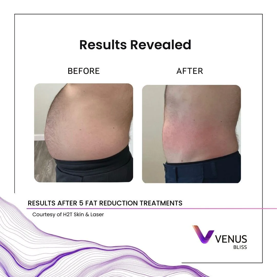 Venus Bliss is a non-invasive body contouring treatment that targets stubborn fat, reduces circumference, and smooths the appearance of cellulite using diode laser and (optional) complementary skin-tightening technology.